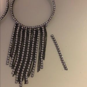 Sparkly hoop earrings. One strand of gems did fall off one of the hoops but it is not noticeable when wearing. Never worn.