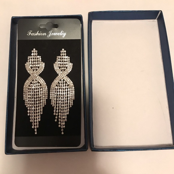 Silver Color Teardrop Crystal Long Tassels Dangle Earrings Sparkling Rhinestone Ladies Gifts
