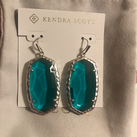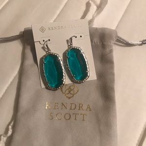 Kendra Scott Ella silver drop earrings in blue glass. Brand new and never used. Dust bag but no tag.