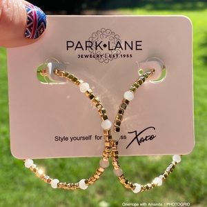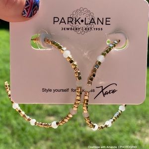 Bnwt Park Lane beaded hoop earrings. They are 18k gold plated and come in original packaging. Faux pearl stones. Stunning!