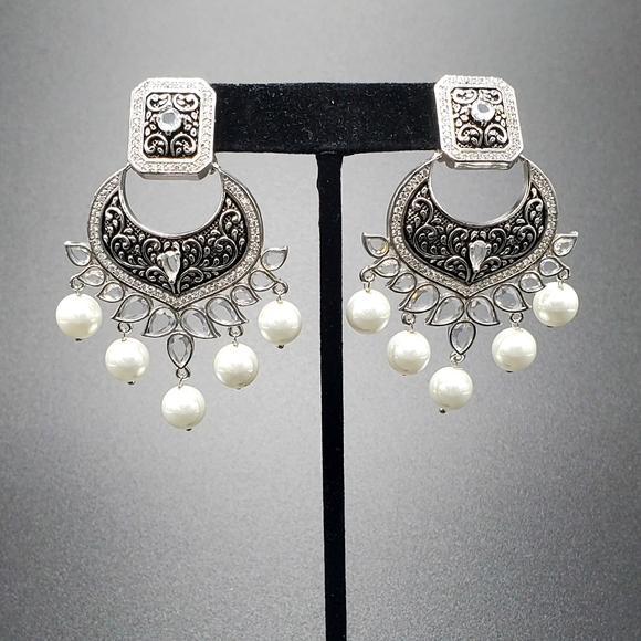 Handcrafted, lightweight American Diamond earrings with oxidized plating offers comfortable fit without compromising on style. This darling will surely put you in spotlight!