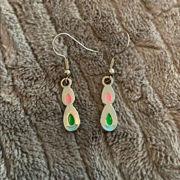 Pink, green, blue and silver earrings. Never worn