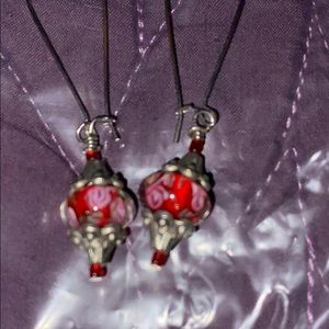 Handmade cute red and clear earrings