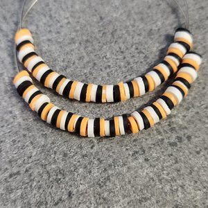 I have cabochon earrings with various designs, and hoop earrings made with clay discs