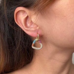 Heart earrings, Elevator stony earrings, Colored stones, Small elegant earrings