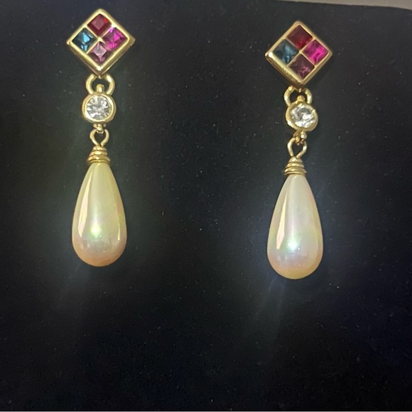 Multicolored faux pearl drop dangle earrings