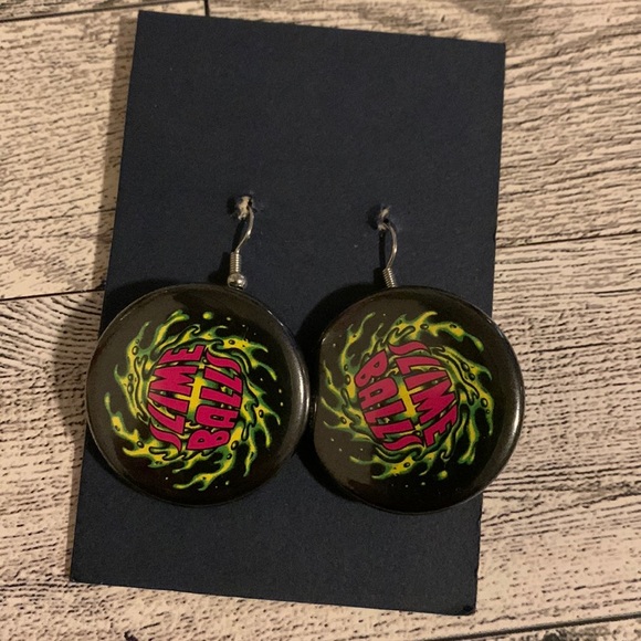 Button earrings. Slime balls. Skate style handmade earrings. Cute /cool