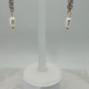 Stainless steel Earrings Cultured Freshwater Pearls & Zircon, Handmade Polished Perfect wrap for a cute gift