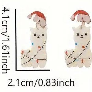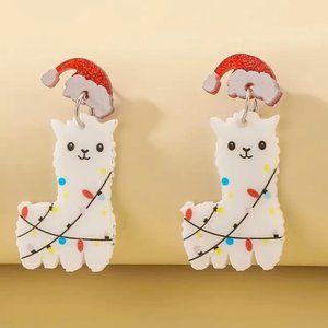 Earrings Alpaca Llama Christmas Holiday Dangle Santa Hat Lights Ornaments Gift