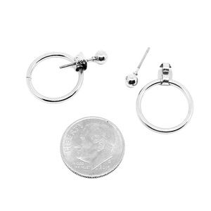 Awesome!! Pair of ball earring studs with circle ear jackets in silver tone metal. Ball stud is 4mm. Hoop ring ear jacket is 21mm wide, 1.5mm thick. Standard posts for pierced ears. Total weight 2.3 grams.