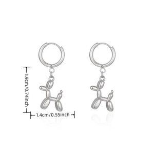 Dangle Hoop Metal Balloon Dog Pierced Earrings