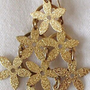 Earrings Beautiful Shiny Glittery Gold-Tone Floral Drop Dangling Pre-Owned Nice