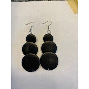 Earrings Black Dangle Teardrop Wooden Boho Modern Round Hippie Statement NEW