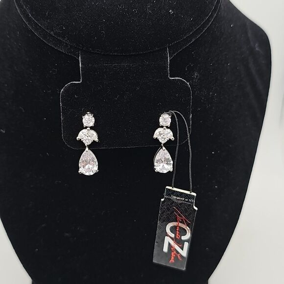 Earrings CZ's by Kenneth Jay Lane Silvertone Hardware Pierced Posts, drop 1", NWT.