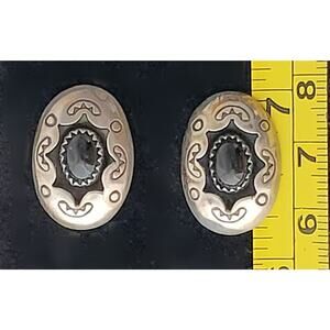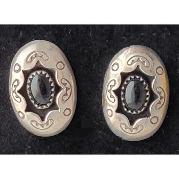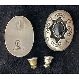 Earrings Carolyn Pollack Sterling Silver Onyx Shadow Box Post Signed