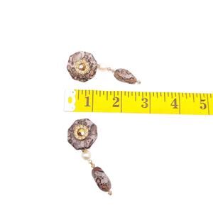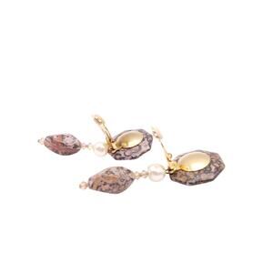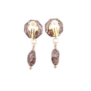 Earrings Clip On Leopard Skin Jasper Faux Pearl Dangle AB Crystal Rhinestones