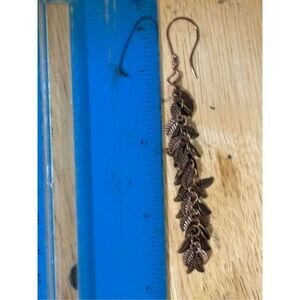 Copper Leaf Earrings, Fall Theme, 4”, Handmade, NEW. This is an antique copper chain with oodles of teeny tiny leaves from each ring. It falls so nicely on the neck, and is quite comfortable to wear. They are suspended from hand crafted French Hooks. This will go with so many fall outfits and can easily take you right into winter. New from my Florida studio. Made in the USA.