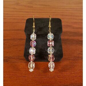 Earrings Crystal Light Red Iridescent Retro Style Dangle Drop Vintage 3" New