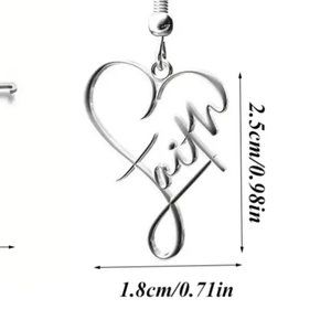 Earrings Faith Dangle Silver Tone Fish Hook Heart Love Stylish Minimalist Belief