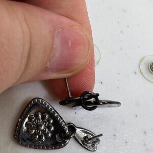 Earrings Floral Charm Green Brown Rhinestone Enamel Stud Dangle Black Used, see
