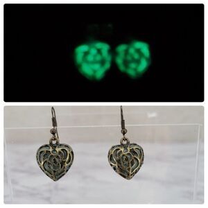 Earrings Glow in The Dark Hearts Brass Toned Metal