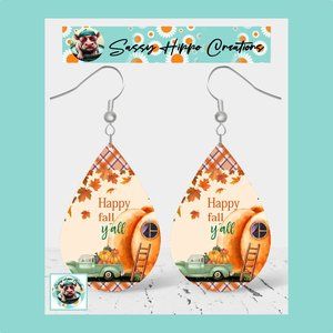 Earrings Happy Fall Y'all Autumn Leaves Pumpkin Truck Hand Sublimated Printed
