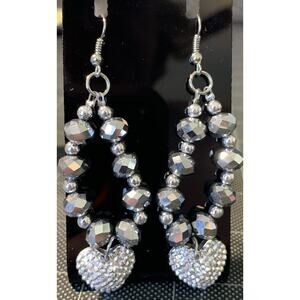 Earrings Heart And Sparkle Silver Color Themed 4 Pair Lot Pierced Dangler FLAW