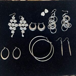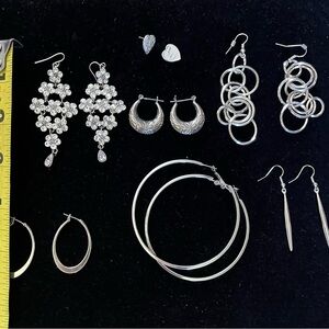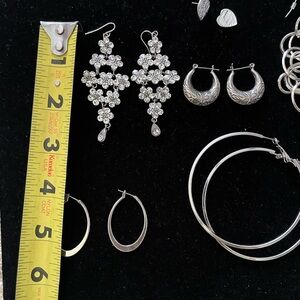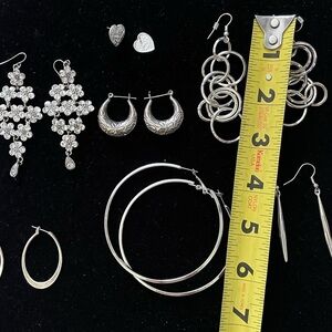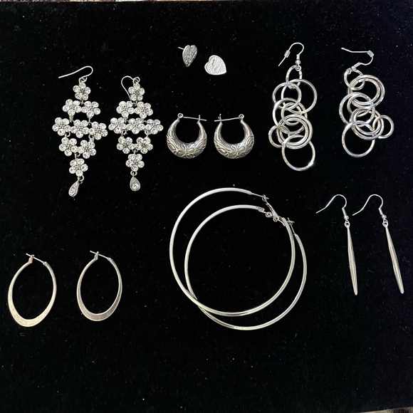 Silver tone Earrings Lot of 7 pairs Unsigned except one pair 925 sterling silver earrings come with no backs see pictures please