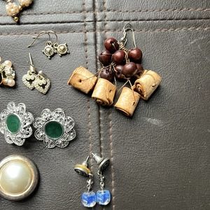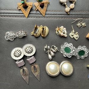This listing is for 19 pairs of earrings. Some are clip-ons, some pierced, some vintage, some have tarnish, one pair has a scratch on front, and one has a missing rhinestone. Sold as is. Great for crafting. Please note a few of the pierced earrings do not have a backing. Can easily get some from craft store.