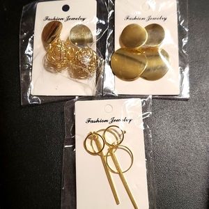Earrings Lot of 3 Pairs Gold Tone Post Earrings