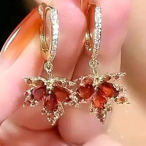 Earrings Maple Leaf Fall Harvest Dangle Leaves Gold Rhinestones Minimalist Glam