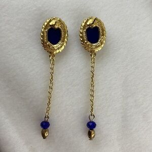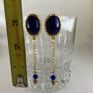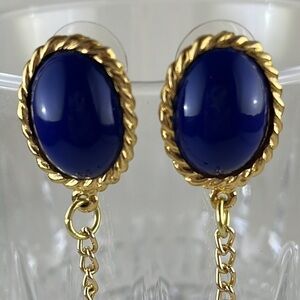 Earrings Navy Blue with Gold Toned Rope and Chain