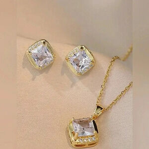 Absolutely Stunning New With Tags Earrings Necklace Set Square Cubic Zirconia Chic Classic Modern Stylish Bohemian Minimalist Modern Must-Have Spring Summer Fall Packable Comfortable Slip-On Christmas Holiday Party Career Office Casual Gift Wedding Girlfriend Mom Hypoallergenic Gold Plated 925 Birthday gift Girlfriend Gift Vacation Spring Summer Prom Graduation Spring Summer Wedding Date Night Birthday Gift Sparkling Sequin Embroidered Rinestone Mother's day gift