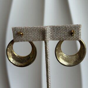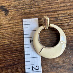 Earrings Off White Enamel Gold Hoops Dangle Drop Earrings Vintage 80s Cream