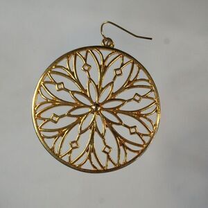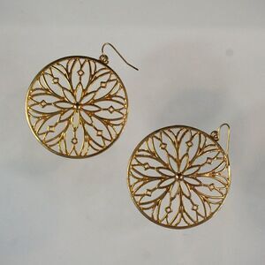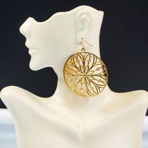 Earrings Openwork Disc Gold Tone Floral Motif Dangle