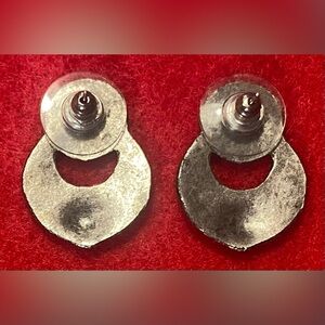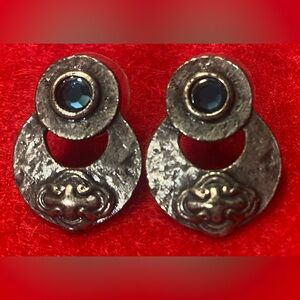 Earrings Pewter Tone w/Blue Stone Pierced New Hammered Finish Vintage