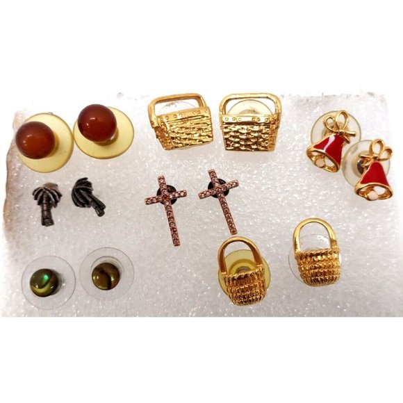 Earrings Pierced Lot of 7 p0airs Baskets Cross Bells Palm Tree Ball Unbranded