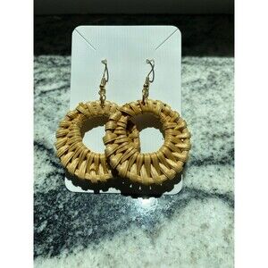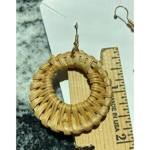 Earrings Ratan Woven Straw Hoop Circle Dangle On Trend Fashionable Casual Boho