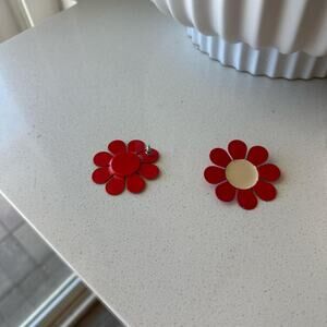 Women’s Earrings Red Flower Earrings, Enameled Metal, Whimsical Jewelry, Handpainted Flowers, Flower Jewel Art Deco Vintage