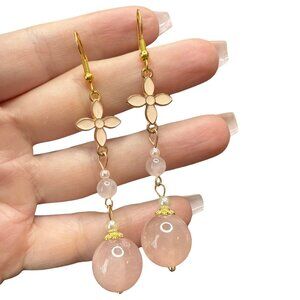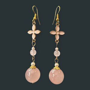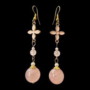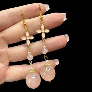 Earrings Rose Quartz sphere cross drop women’s jewelry fashion accessories NEW