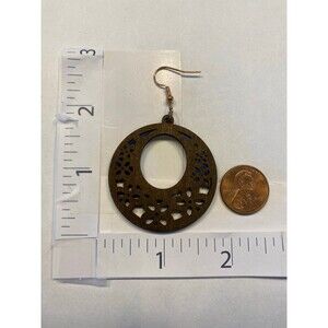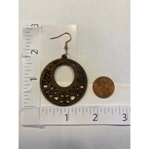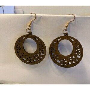 Earrings Round Wooden Laser Cut Dark Brown Dangle Boho Hippie Retro Unique