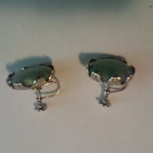 Earrings Screw On Light Green and Silver Approx 1" Across