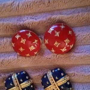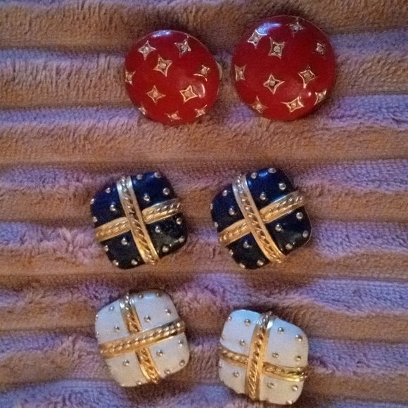 Set of 3 pairs Embellishmened Earrings. Clip on.