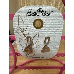 These Bella Uno earrings showcase an artisanal design crafted from 100% recycled metal. The geometric shapes and hammered finish reflect a modern, eco-conscious aesthetic. Lightweight and versatile, they are suitable for various ensembles, offering a blend of sustainability and style. A thoughtful accessory for individuals who appreciate unique and environmentally responsible craftsmanship.