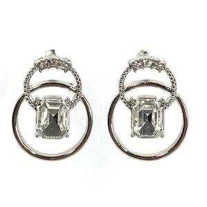 Earrings Silver Tone Rhinestones Circle Unique Bing Elegant 1”