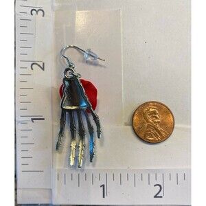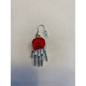 Earrings Skeleton Hands Day of the Dead Red Rose Halloween Gothic Graveyard