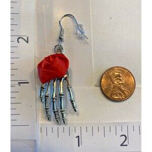 Dangle Earrings Skeleton Hands Day of the Dead Red Rose Halloween Gothic Graveyard Cemetery Tombstone Skull Witch Vampire Ghost Cryptic Ominous Sinister