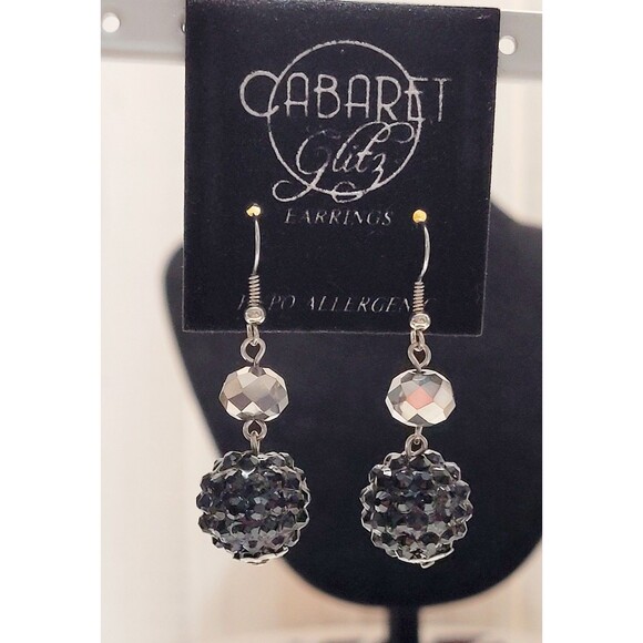 Earrings 'Snowball Glitz' BLACK Colored Bead NWT Hypoallergenic