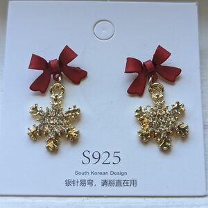 Cute snowflake Earrings dangling down from red bow. ❄️🎀