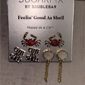Add a pop of fun to your look with this Sugarfix by BaubleBar “Feelin’ Good As A Shell” Happy as a clam. 3-Pair Earring